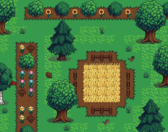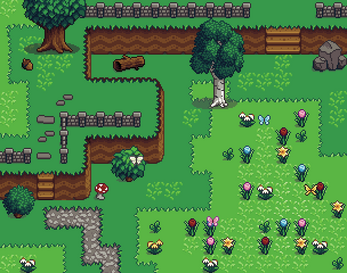 - 60+ terrain tiles (grass, paths, dirt, water)